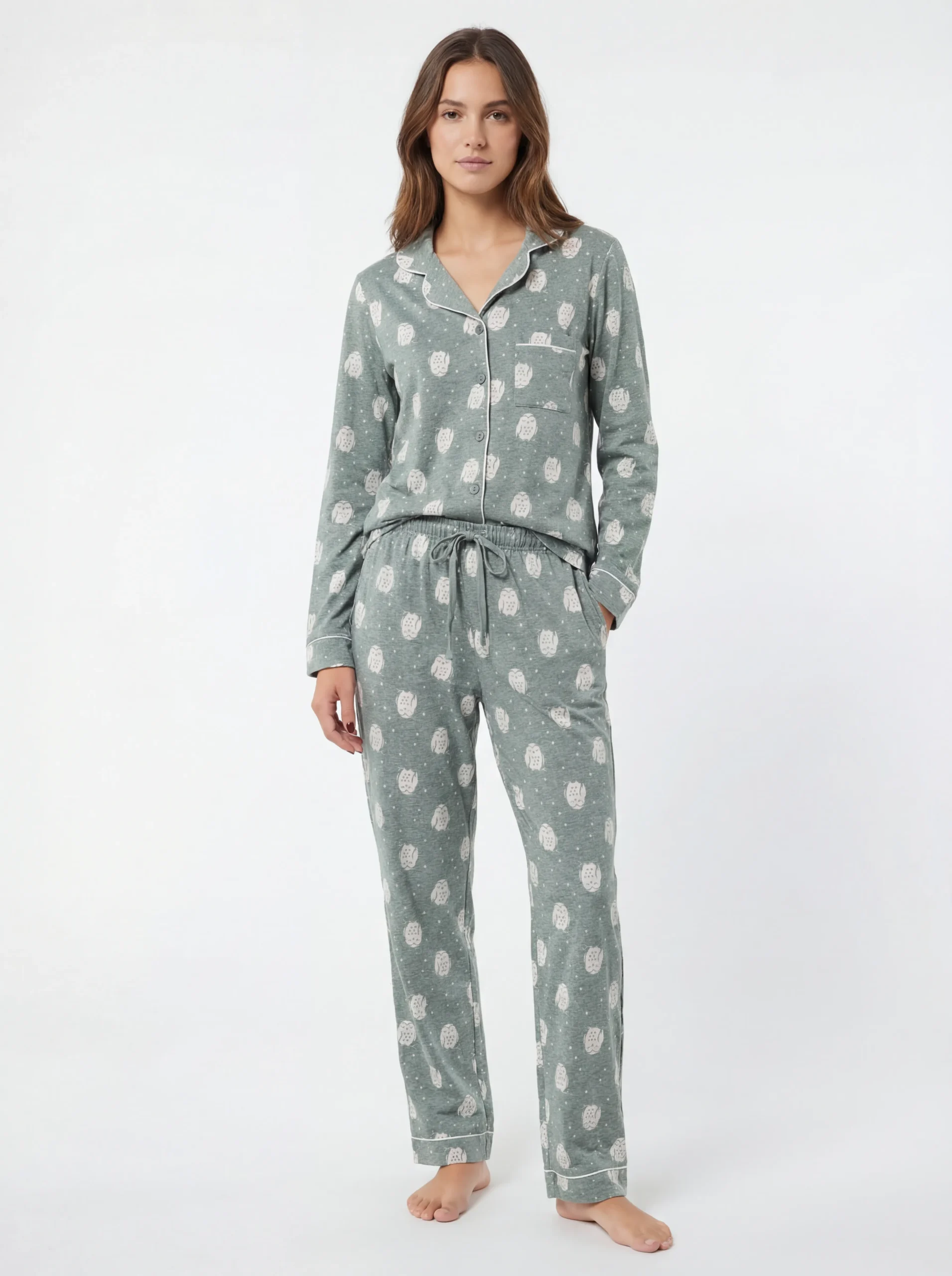 بيجاما مطبوعة بأكمام طويلة مع أزرار