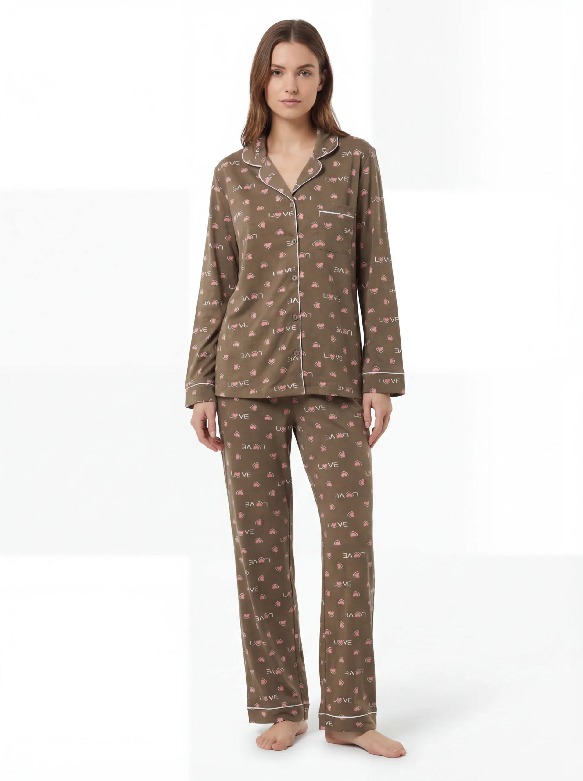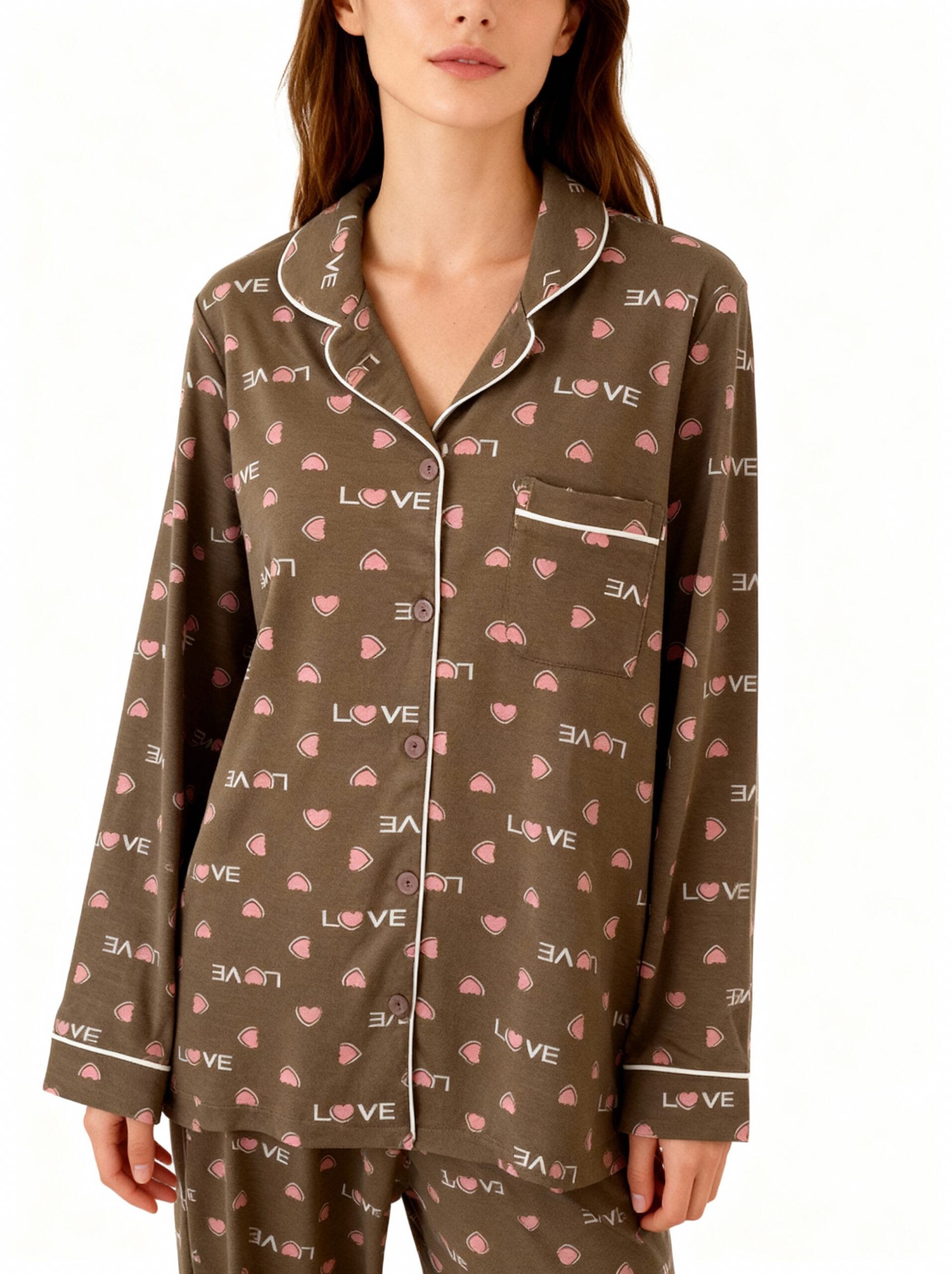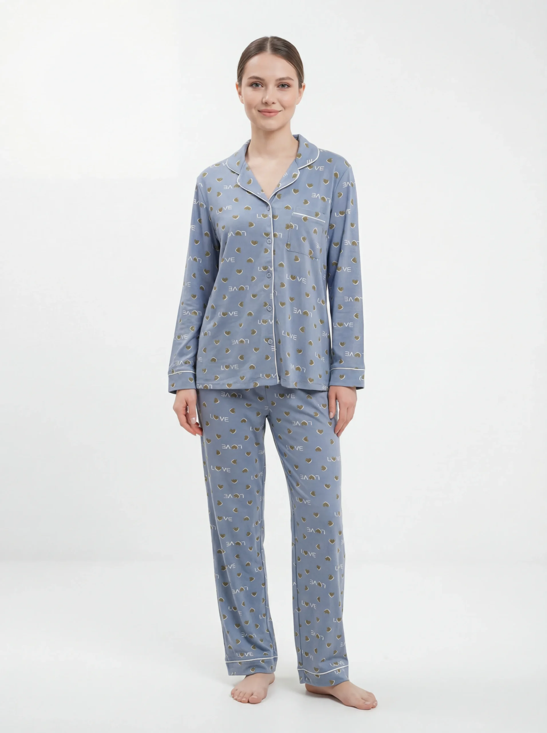 Printed Pajamas with Long Sleeve Buttons